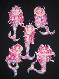 I’ve been really busy with all my new designs. This is BUBBLES and is rather like a variation of the Rainbow Dancers, using the I Love Mermaids as the basis of the dolls, and altering a bit to look good. I’m really happy with them. They were lots of fun to make . I also made some painted as well, which was quicker than making the little suffolk puff boobs.