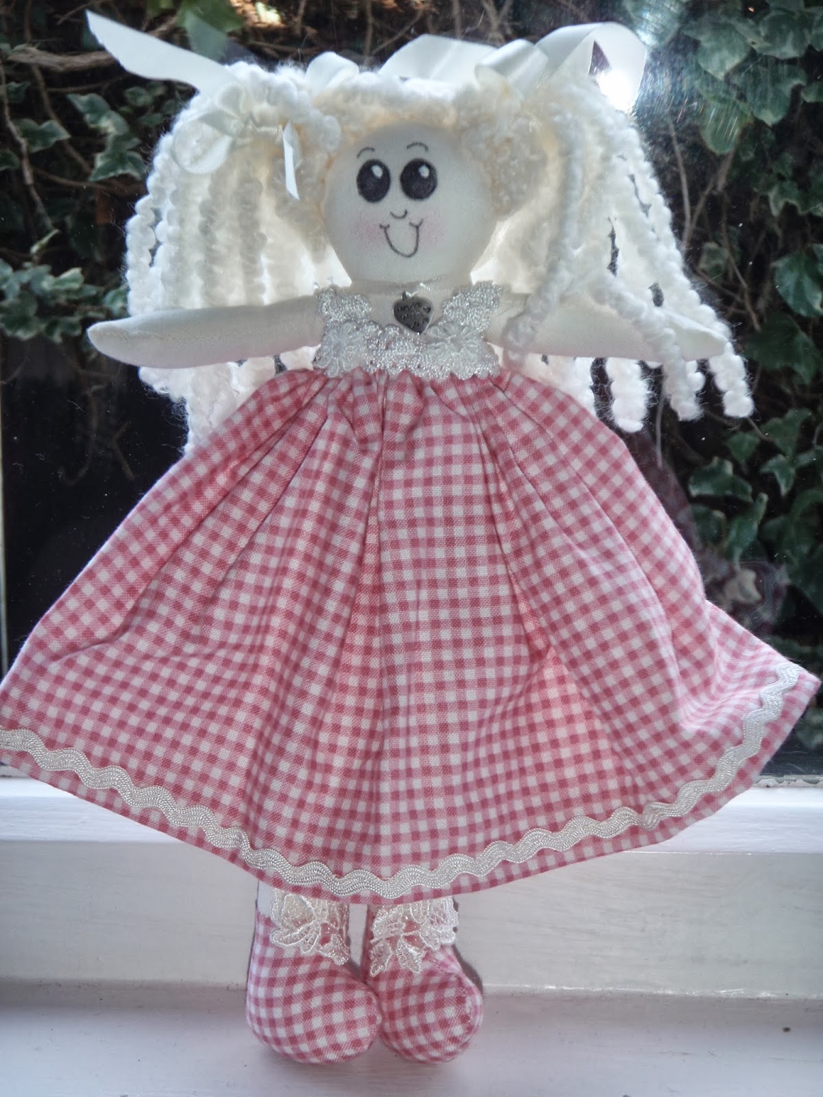 Minnie is a gorgeous lil raggie I have made, and is proving very popular. She can be made out of a small amount of materials and is really quick. She is 9 inches tall.